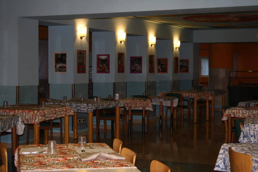 Lo spazio è ideato con un bancone self service dal quale si possono visionare le pietanze del giorno e di seguito i tavoli per il servizio mensa.