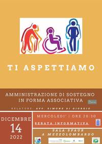 - Invito incontro "Amministrazione di Sostegno in forma associativa" mercoledì 14.12.2022 ore 2030. - Sala Spaur Mezzolombardo